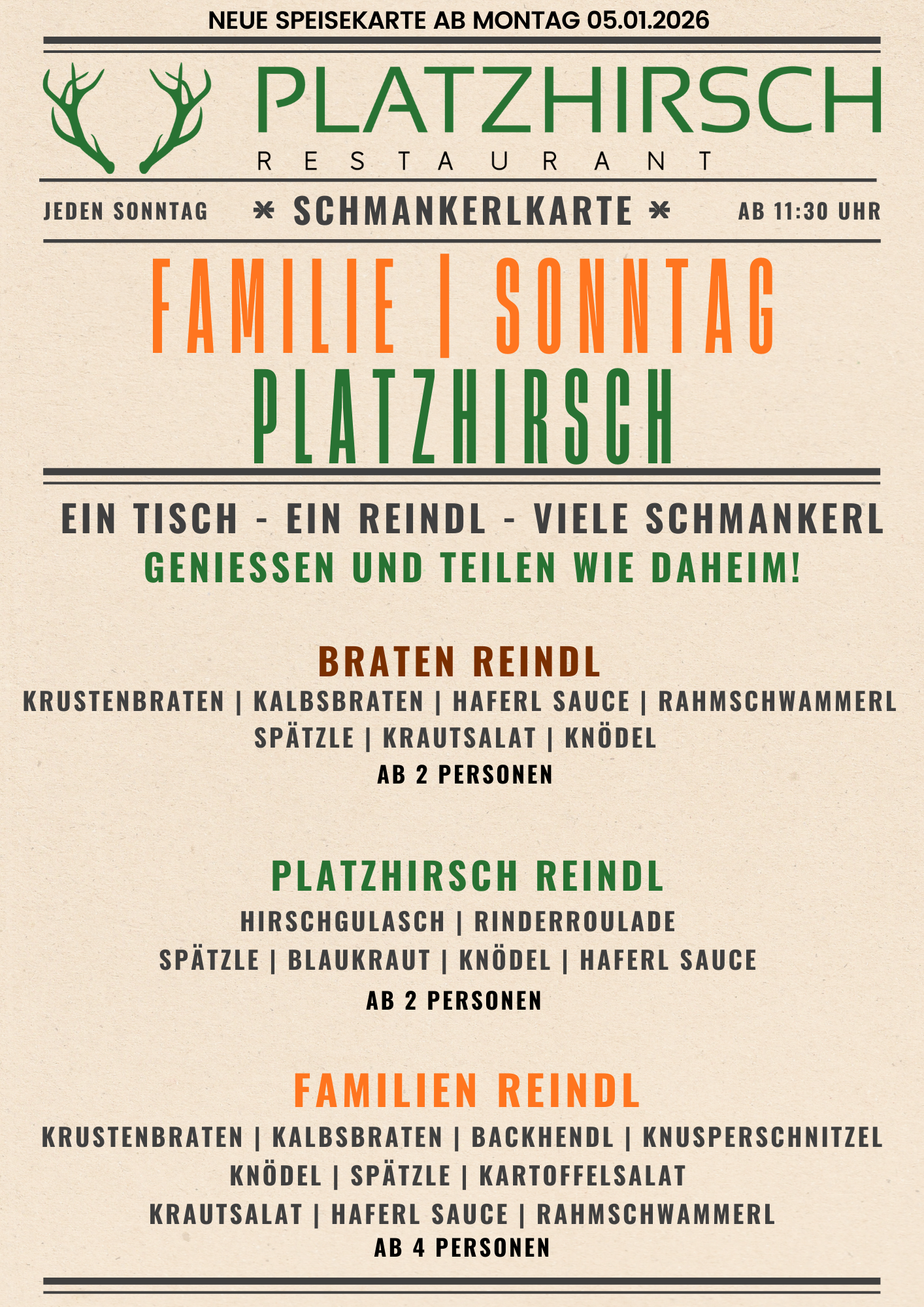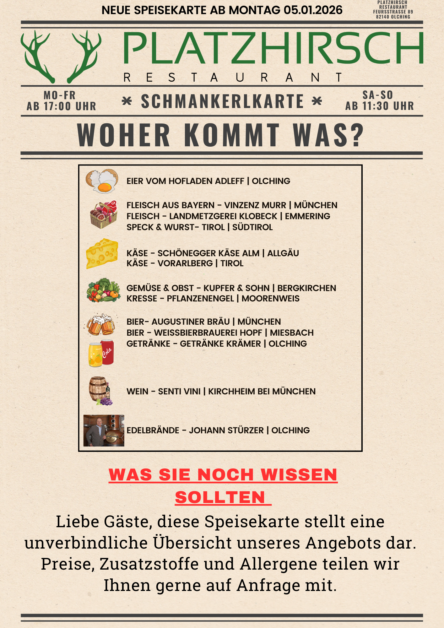 Restaurant Platzhirsch: Unsere Speisekarte